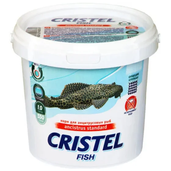 Корм для анциструсових риб Cristel Ancistrus Standard спеціально розроблений для задоволення всіх потреб таких риб у поживних речовинах та забезпечення їх потрібними вітамінами та мікроелементами для повноцінного розвитку та життя.