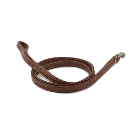 Повідець Cristel для собак, тришаровий, з фурнітурою "нікель", принт "кайман", 12 мм, шкіра, коричневий