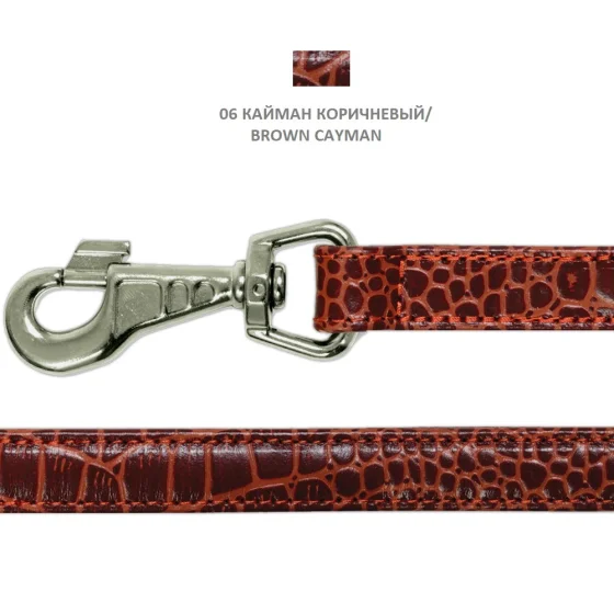 Повідець Cristel для собак, тришаровий, з фурнітурою "нікель", принт "кайман", шкіра, 20 мм, коричневий
