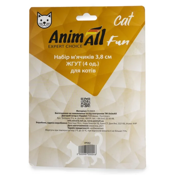 Набір м'ячиків AnimAll Fun Cat Джгут для кішок, пластик, 4 шт