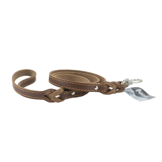 Повідець Cristel для собак, шкіра зеніт, лакований, з проплетом, 16 мм / 130 см, коньяк