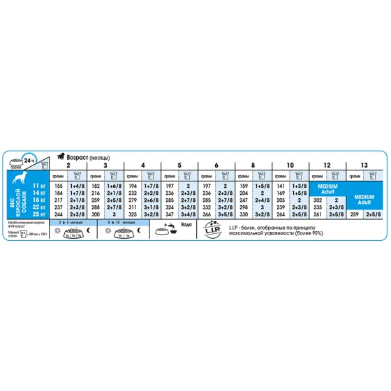 | 11 кг | 155 г (1+4/8) | 182 г (1+6/8) | 194 г (1+7/8) | 197 (2) | 197 г (2) | 159 (1+5/8) | 141 г (1+3/8) | Medium Adult | Medium Adult |