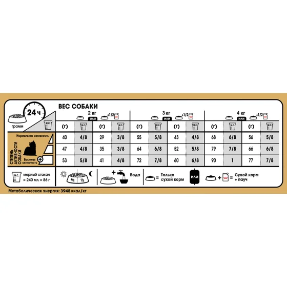 | Вага собаки | Нормальна активність | Підвищена активність | Висока активність |