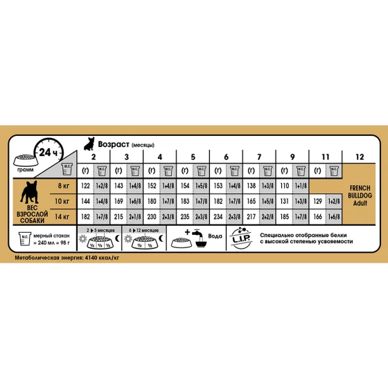 | 11 місяців | French Bulldog Adult | 129 г (1+2/8) | 166 г (1+6/8) |