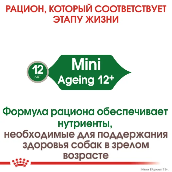 Раціон розроблений для підтримки здоров'я собак малих порід у період старіння. Містить ЕПК, ДГК та комплекс антиоксидантів, які допомагають нейтралізувати вільні радикали.