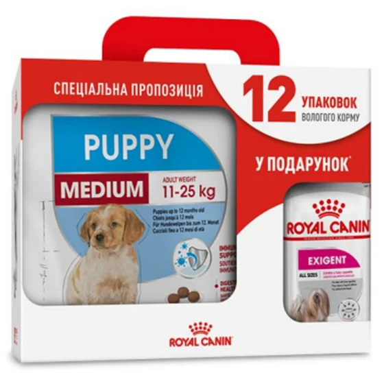 Сухий корм Royal Canin Medium Puppy для цуценят середніх порід до 12 місяців, 4 кг + 12 паучів у подарунок