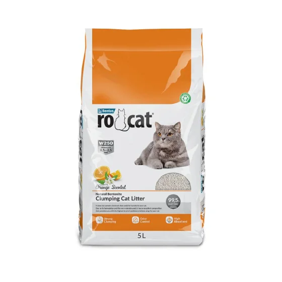 RoCat Orange Scented – це високоякісний бентонітовий наповнювач зі свіжим цитрусовим ароматом апельсина. Швидко вбирає вологу, утворює щільні грудочки та надійно блокує неприємні запахи, підтримуючи чистоту і свіжість у туалеті вашого улюбленця.