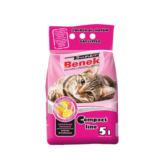 Бентонітовий наповнювач Супер Бенек Compact для котячого туалету, з ароматом цитрусової свіжості, 5 л