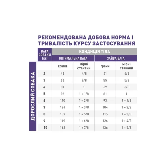 - для стерилізованих/кастрованих собак вагою до 10 кг, схильних до набору надмірної ваги та сечокам'яної хвороби;