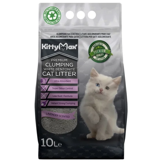 Бентонітовий наповнювач Kitty Max для котячого туалету, з ароматом лаванди, білий, 10 л