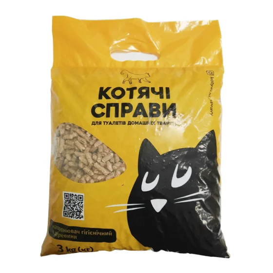 Деревний наповнювач Котячі справи, для котячих туалетів, 3 кг