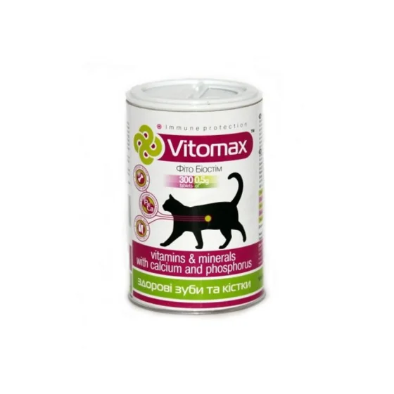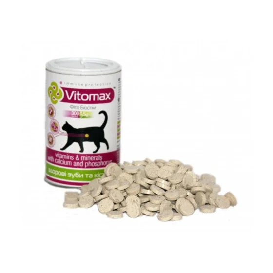 Вітаміни Vitomax для зміцнення зубів та кісток котів, 300 таб