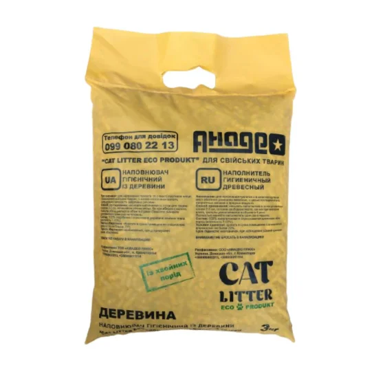 Наповнювач на основі гранули з тирси деревини для туалету всіх домашніх тварин. Гранули є екологічно чистим продуктом найвищої якості! Виготовлені з натуральної сосни і не містять мінерального пилу, шкідливого для здоров'я людини та тварини.