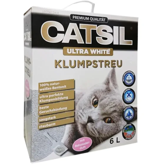 Бентонітовий наповнювач Agros Trading Ultra White для котячого туалету, з ароматом дитячої присипки, 6 л