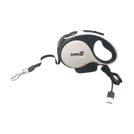 Повідець-рулетка AnimAll з LED-ліхтариком, для собак вагою до 50 кг, 5 м, чорно-білий