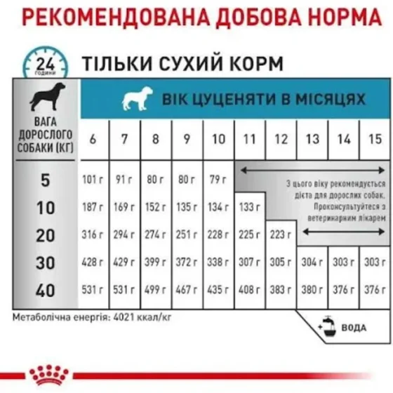 - Вік до 6 місяців, якщо очікувана вага в дорослому віці менше ніж 4 кг;