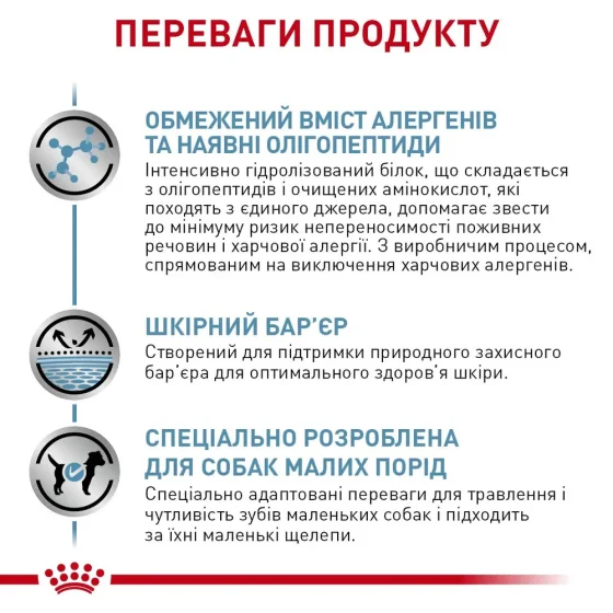Сухий корм ROYAL CANIN® АНАЛЛЕРДЖЕНІК СМОЛ ДОГ — повнораціонний дієтичний корм для собак, розроблений для зниження ознак інгредієнтної та нутрієнтної непереносимості. Джерела гідролізованого протеїну та відібрані джерела вуглеводів.