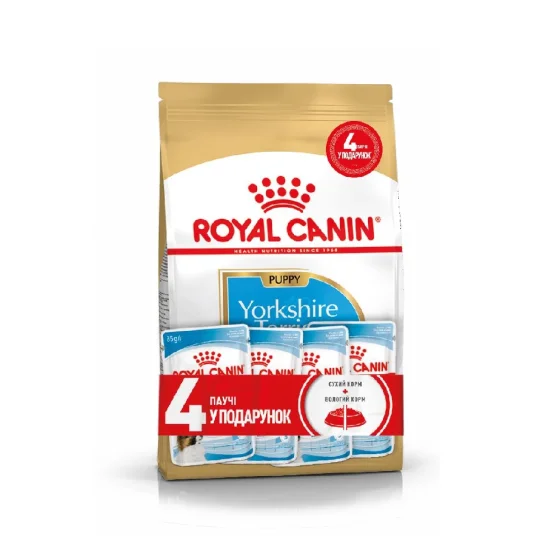 Акційний набір Royal Canin Yorkshire Puppy для цуценя йоркширського тер'єру, 1.5 кг + 4 пауча в подарунок