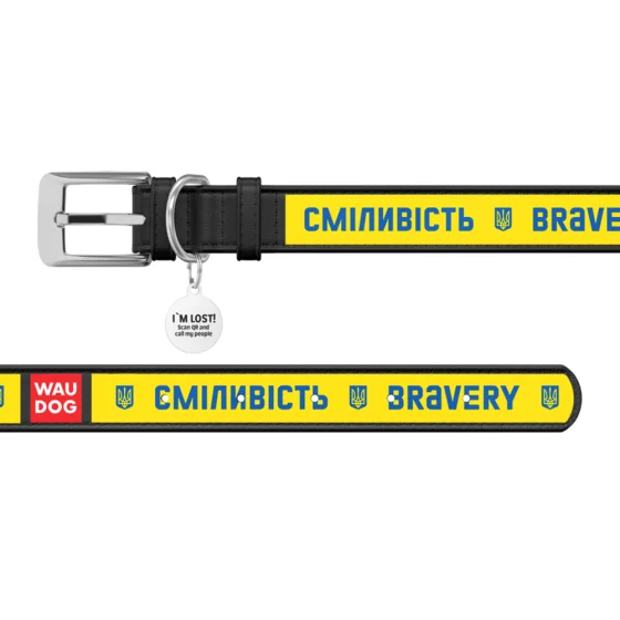 Нашийник Waudog Design із QR-паспортом та принтом «Сміливість» — стильний та надійний аксесуар для вашого улюбленця. Виготовлений із високоякісної шкіри з яскравим принтом «Сміливість», який довго зберігає привабливий вигляд. Регульована довжина забезпечує комфортну посадку на шиї собаки, а міцний матеріал не обмежує рухів.