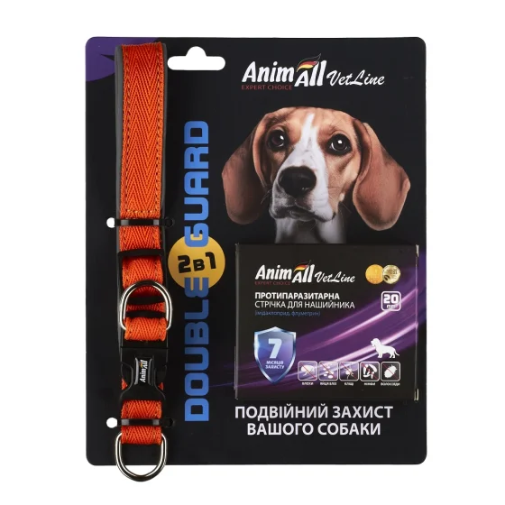 Комплект Енімал Ветлайн Double Guard нашийник з протипаразитарною стрічкою, 20 мм, 320 - 400 мм, помаранчевий