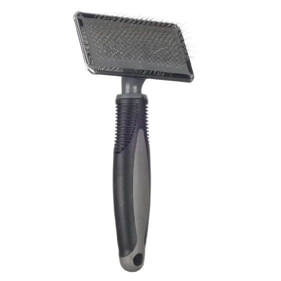 Закруглені кінчики та металеві зубці з кульками дбайливо розплутують шерсть, не дряпаючи шкіру. Щітка ефективно видаляє стару шерсть, стимулює волосяні фолікули і надає шерсті здоровий, пухнастий вигляд.