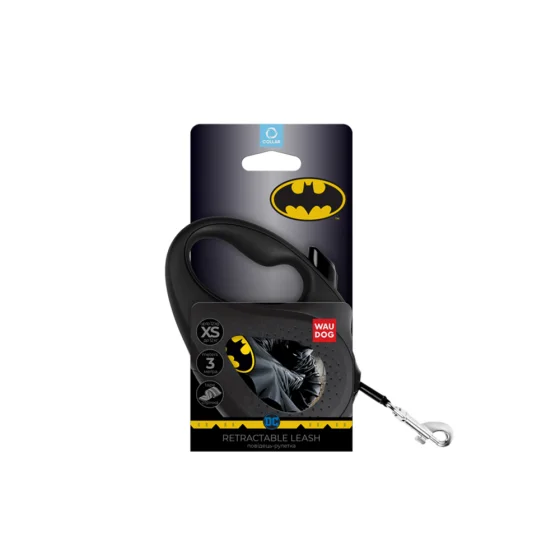 Повідець-рулетка Waudog R-leash для собак, малюнок "Бетмен Чорний", світловідбиваюча стрічка, чорний, XS, 12 кг, 3 м