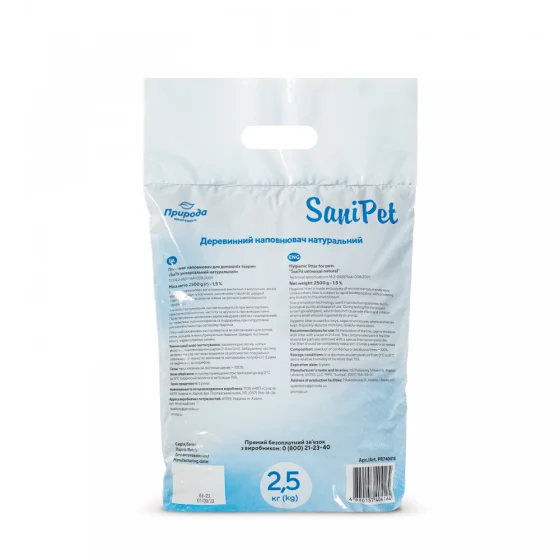Гігієнічний наповнювач Природа Sani Pet для котів, універсальний, деревинний, 2.5 кг