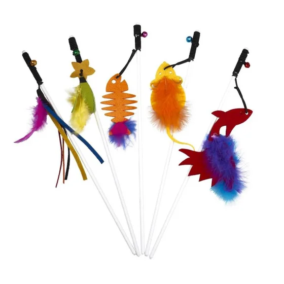 - різноманітність кольорів та форм на вудочці привертає увагу кота, стимулюючи його природні мисливські інстинкти;