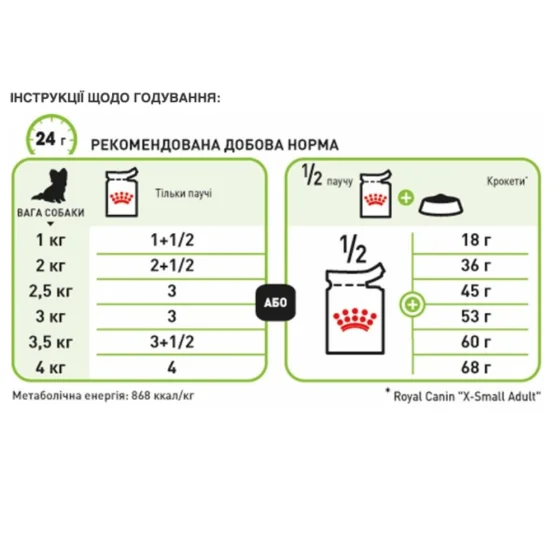 Вологий корм Royal Canin X-Small Adult для дорослих собак мініатюрних порід, шматочки в соусі, пауч, 85 г