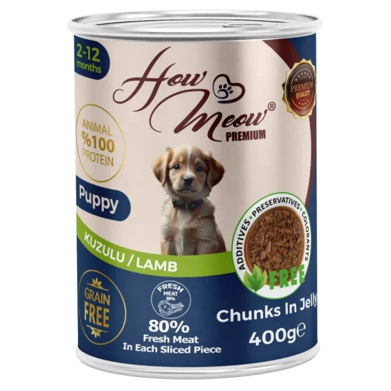 Вологий повнораціонний корм HowMeow Puppy з ягням призначений для щоденного годування щенят усіх порід з моменту відлучення від матері до 12 місяців. Ніжні шматочки ягняти в соусі мають високий смаковий потенціал і поживність, забезпечуючи зростаючий організм всіма необхідними речовинами для правильного розвитку.