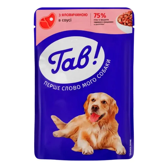 Вологий корм Гав для дорослих собак, з яловичиною у соусі, 100 г