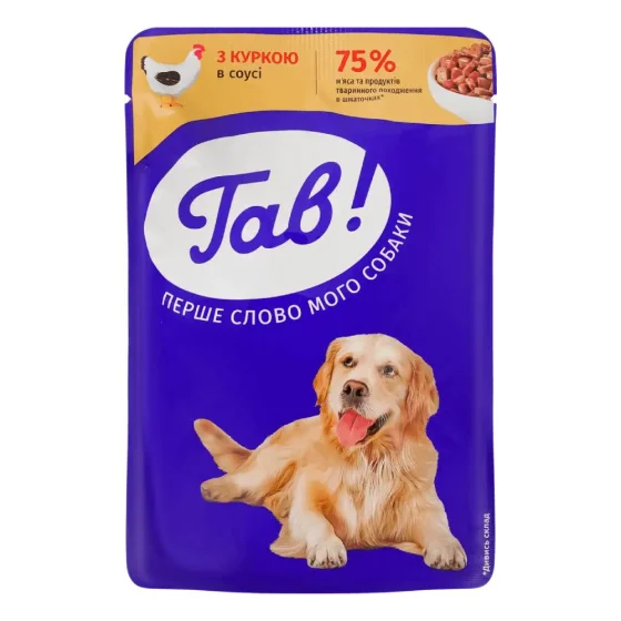 “Гав!” - каже кожен собака, коли хоче їсти, коли чує хрускіт упаковки, коли смачно наївся і дякує, бо “Гав!” - це перше і єдине слово мого собаки. А ще “Гав!” - це щоденне збалансоване харчування, яке забезпечує собаку необхідними білками, жирами, вуглеводами та вітамінами.