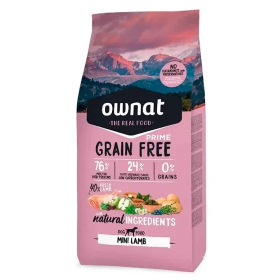 Ownat Grain Free — спеціально розроблений раціон для дорослих собак вагою від 1 до 10 кг з чутливістю або непереносимістю курятини. Містить 40% свіжої баранини, високоенергетичний і збагачений білками, що задовольняє підвищені метаболічні потреби малих порід собак. Невеликі та апетитні гранули роблять корм привабливим навіть для найвибагливіших улюбленців.