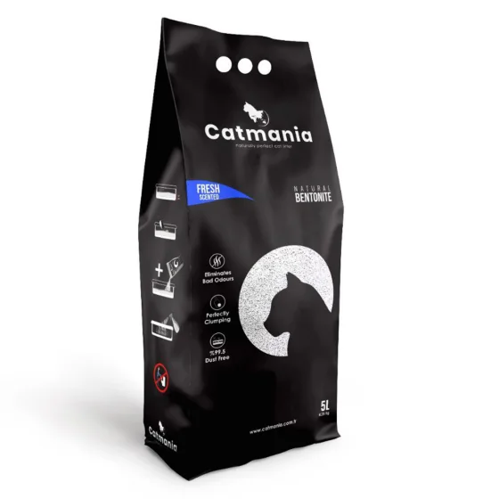 Бентонітовий наповнювач Catmania зі свіжим ароматом створений для щоденного підтримання чистоти та комфорту в котячому туалеті. Основу продукту становить білий природний бентоніт, який швидко поглинає вологу та утворює щільні грудочки. Блакитні ароматизовані гранули поступово вивільняють відчуття свіжості, допомагаючи нейтралізувати запахи без різкого впливу на чутливий нюх котів.