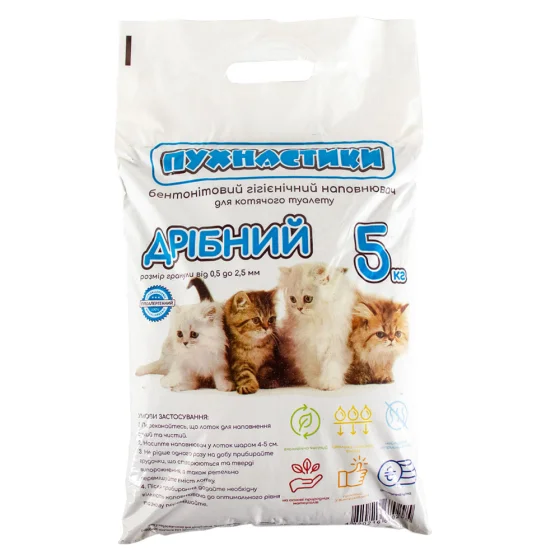 Бентонітовий наповнювач Пухнастики для котів, дрібний, без аромату, 5 кг