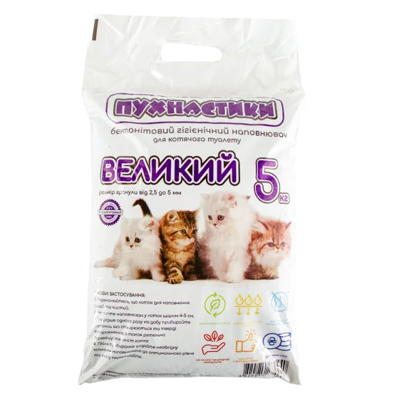 Бентонітовий наповнювач Пухнастики для котів, крупний, без аромату, 5 кг