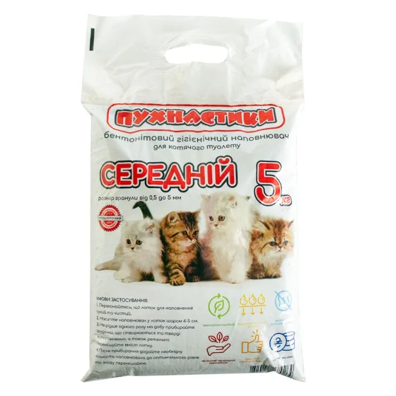 - Бентонітовий наповнювач для котів "Пухнастики"