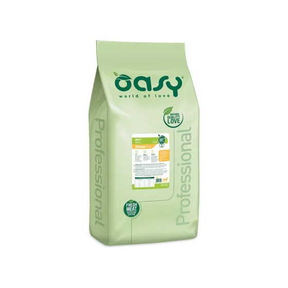 Повноцінний та збалансований корм, який забезпечує правильне споживання певних мінералів для підтримки здоров'я зубів і ясен у собак малих порід. Ідеально підходить для підтримки здоров'я та гарної фізичної форми вашого собаки.Належне споживання кальцію та фосфору разом з особливою консистенцією корму сприяють здоров'ю ясен та очищенню зубів. Пивні дріжджі, багаті на вітаміни групи В та важливі мінерали, допомагають зміцнити імунітет. Вітамін Е, як природний антиоксидант допомагає собакам залишатися активними та життєрадісними. Цикорій є природним джерелом FOS (фруктоолігосахаридів), які разом з MOS (маннанолігосахаридами) сприяють правильному травленню. Екстракт юки допомагає контролювати неприємний запах фекалій. Буряковий жом є чудовим джерелом клітковини і сприяє регулярній роботі кишечника. До складу Oasy входить щонайменше 38% свіжих, зневоднених та гідролізованих продуктів тваринного походження 1-й інгредієнт Свіже м'ясо Свіже м'ясо завжди є першим інгредієнтом, що забезпечує високу засвоюваність, вміст поживних речовин та смакові якості. Технологія F.M.I.S. Гарантує оптимальне збереження поживних речовин у свіжому м'ясі