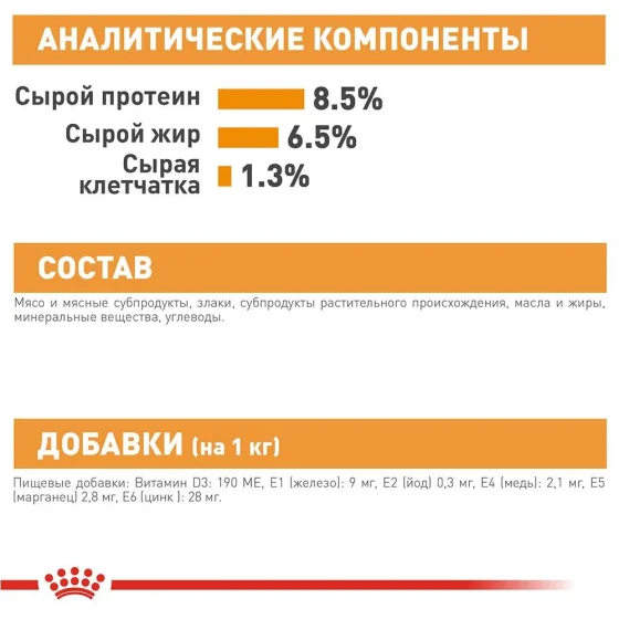 Точно збалансована формула раціону забезпечує оптимальний склад поживних речовин для здорового росту та блиску вовни.