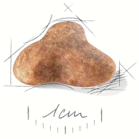 Ексклюзивна, спеціально розроблена форма крокети полегшує захоплення корму та стимулює його розгризання.