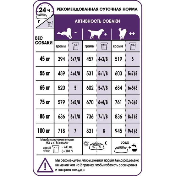 Допомагає підтримувати здоров'я кісток і суглобів собак гігантських порід, вага тіла яких може створювати підвищене навантаження на скелет.