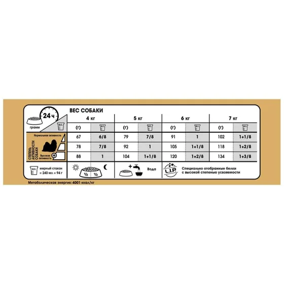 Склад: Рис, дегідратовані протеїни м'яса птиці, тваринні жири, ізолят рослинних протеїнів*, гідролізат протеїнів тваринного походження, рослинна клітковина, буряковий жом, мінеральні речовини, риб'ячий жир, соєва олія, фруктоолігосахариди, олія огірочника (0,1%), екстракт чорнобривців прямостоячих (джерело лютеїну), гідролізат із панцира ракоподібних (джерело глюкозаміну), гідролізат із хряща (джерело хондроїтину).