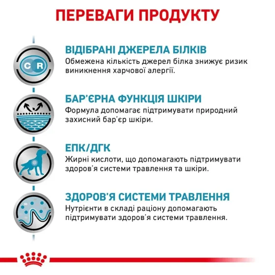Повнораціонний дієтичний корм для собак при небажаній реакції на корм.