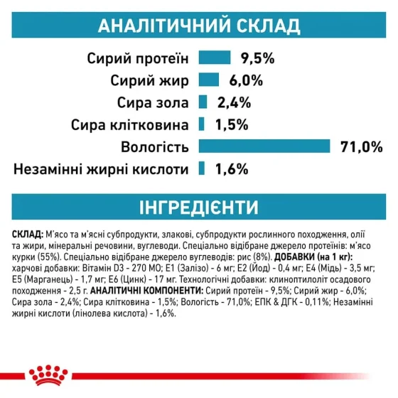| Тип корму | Консерви, Вологий корм |