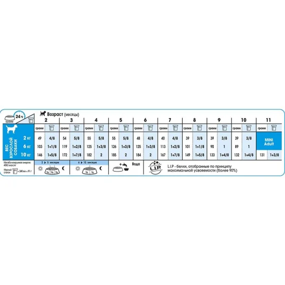 | 11 місяців | Mini Adult | Mini Adult | 131 г (1+3/8) |