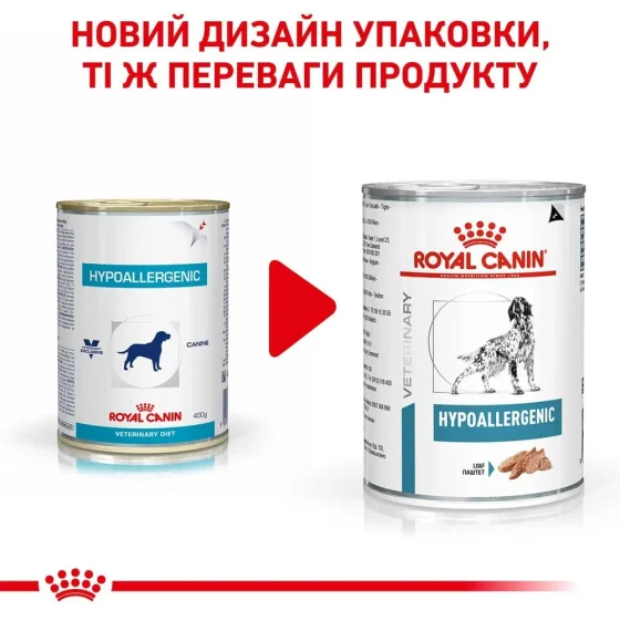 Вологий корм Royal Canin Hypoallergenic при харчової алергії у собак, 400 г