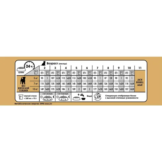 Щеня джек-рассел-тер'єра вирізняється інтенсивним ростом та жвавим темпераментом. Формула раціону забезпечує гармонійний ріст завдяки адаптованому вмісту енергії, протеїнів, кальцію та фосфору. "Здорове травлення"