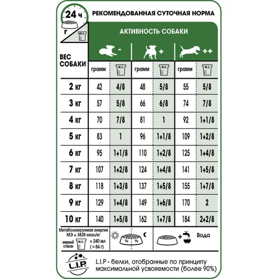 | Вага собаки | Помірний рівень активності | Підвищений рівень активності |