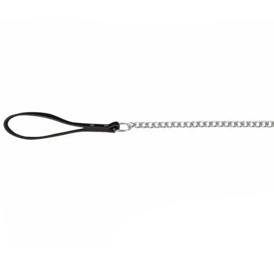 Повідець-ланцюг Тріксі для собак, метал, зі шкіряною ручкою, чорний, 4 мм, 1 м
