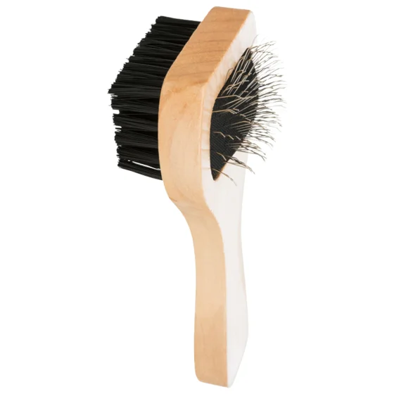 Ця щітка має два види щетини: дуже м'яку металеву щетину з одного боку та нейлонову щетину з іншого боку. Вона призначена для делікатного догляду за шерстю тварини. Застосовується для вичісування шерсті і підшерстка, що омертвів, у котів і собак різних порід.